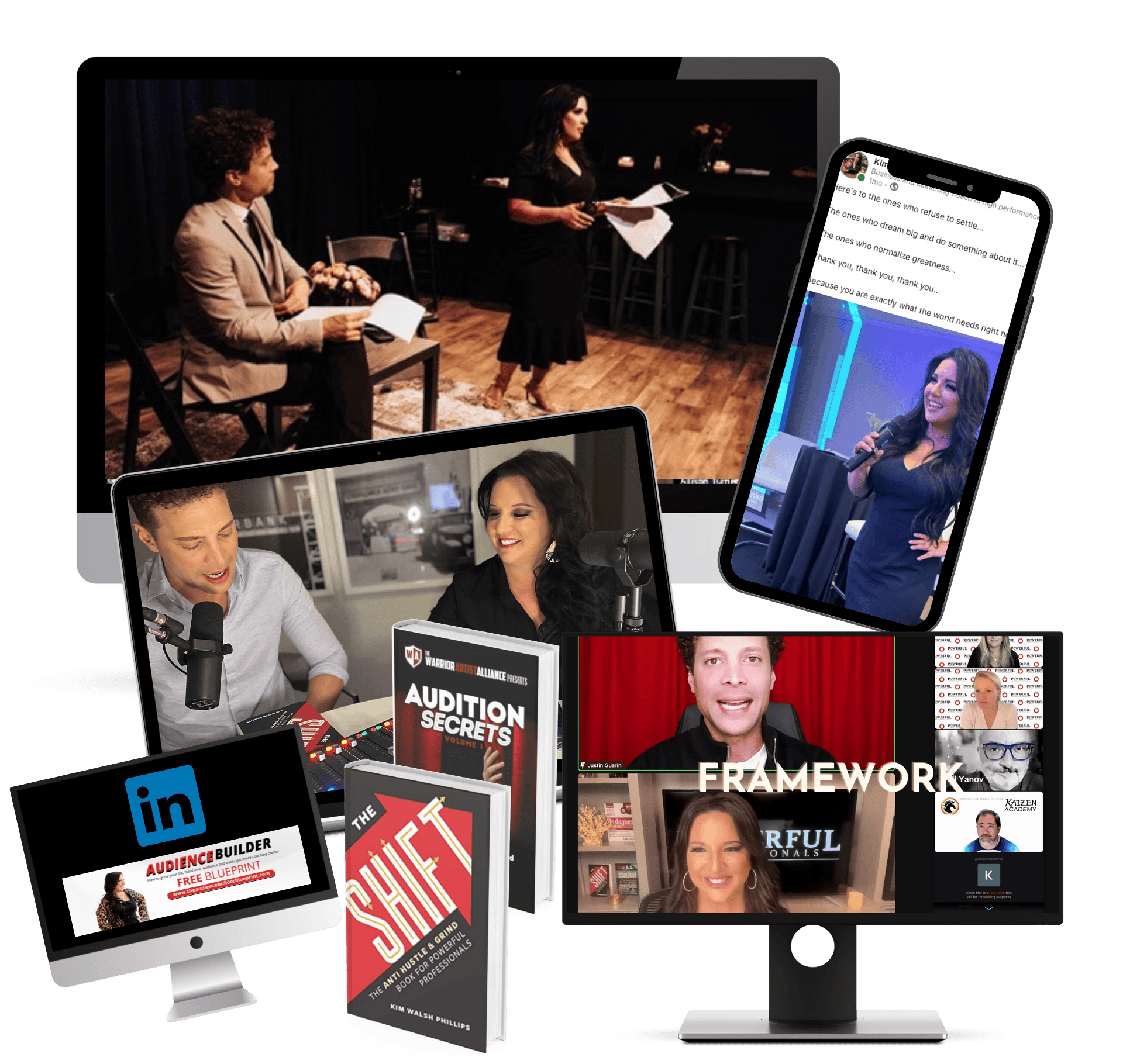 She co-hosts one of the top running business podcasts with American Idol Season One Alumni and 20 year entertainment veteran, Justin Guarini and has been featured on BRAVO's Below Deck. She's the behind-the-scenes secret weapon of some of the biggest names in business including Kevin O'Leary from Shark Tank, Dan Kennedy, Profit First Author Mike Michalowicz, Harley-Davidson, Hilton Hotels and High Point University. Kim has spoken on stages around the world including Dubai, Moscow, London and across the US.